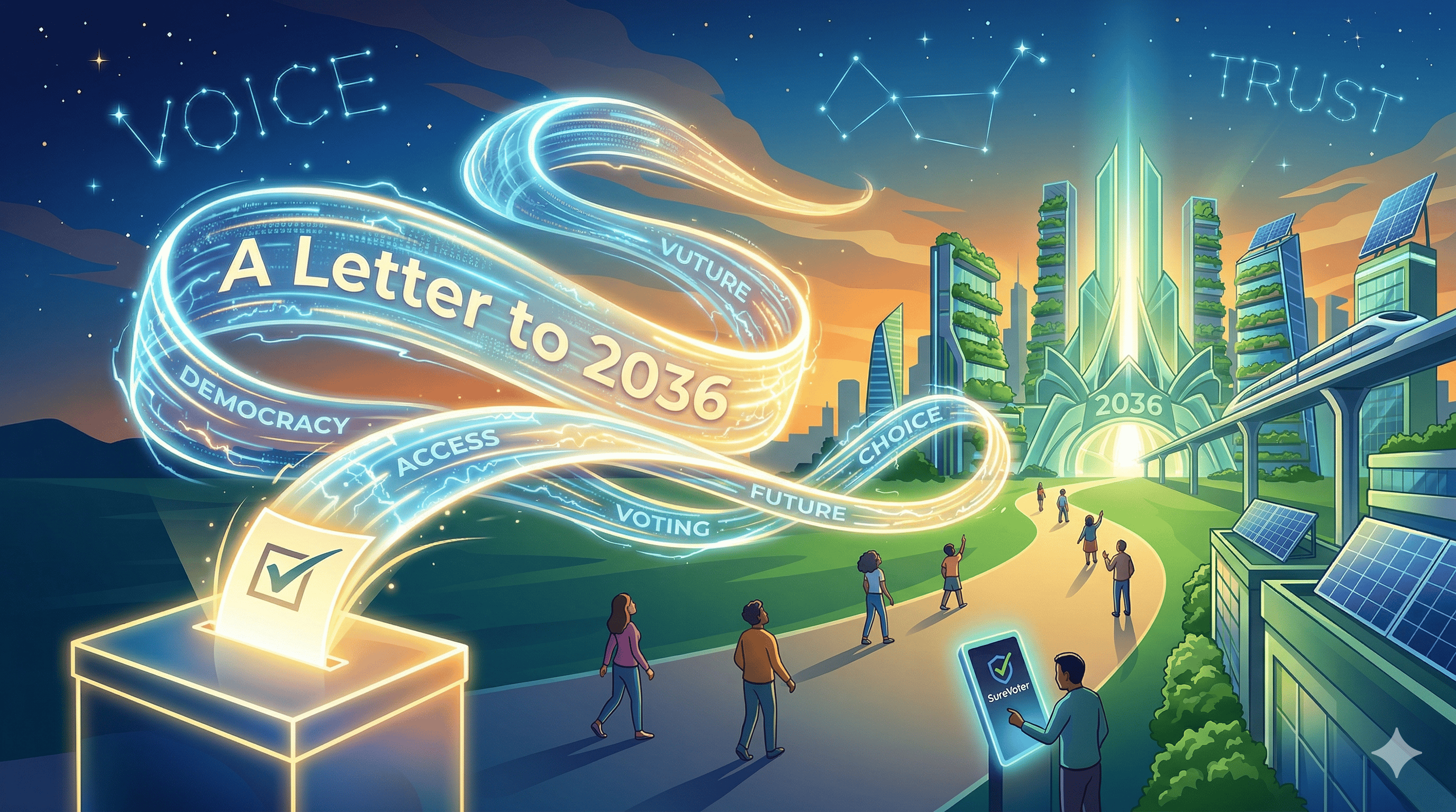 What follows is a work of informed imagination — a specific, concrete picture of what American civic life could look like in 2036 if the civic infrastructure being built today works as intended. It is not a promise. It is a direction. We offer it because we believe that the clearest way to explain why something matters is to show what the world looks like when it exists.